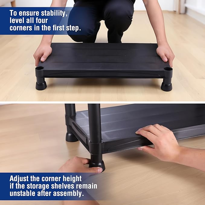 WORKPRO 4-Tier Plastic Storage Shelves, 400lb Capacity Shelving Unit, 51.4" H x 23.9" W x 12" D, Storage Rack for Garage, Home, Pantry, Office, Laundry, Tool-Free Assembly, Black
