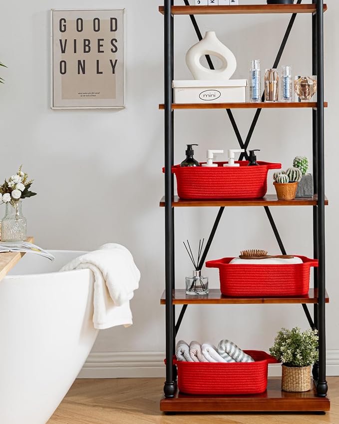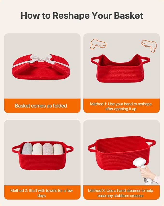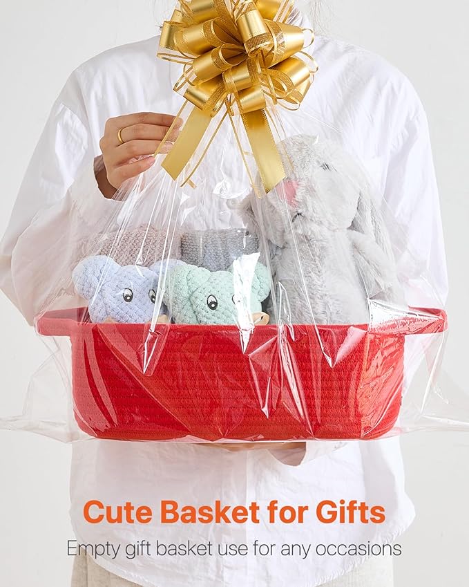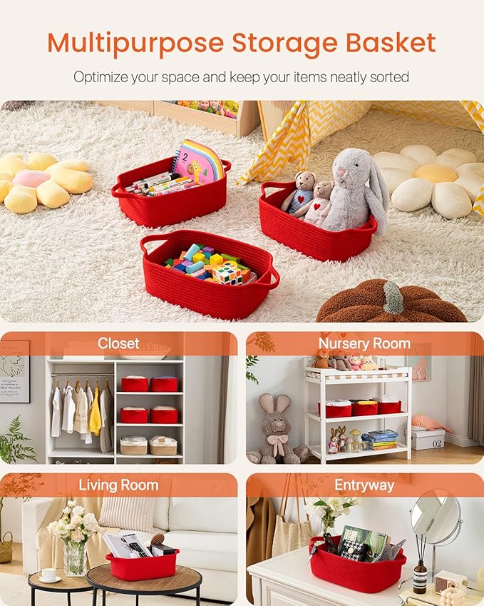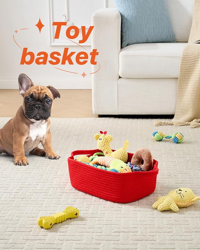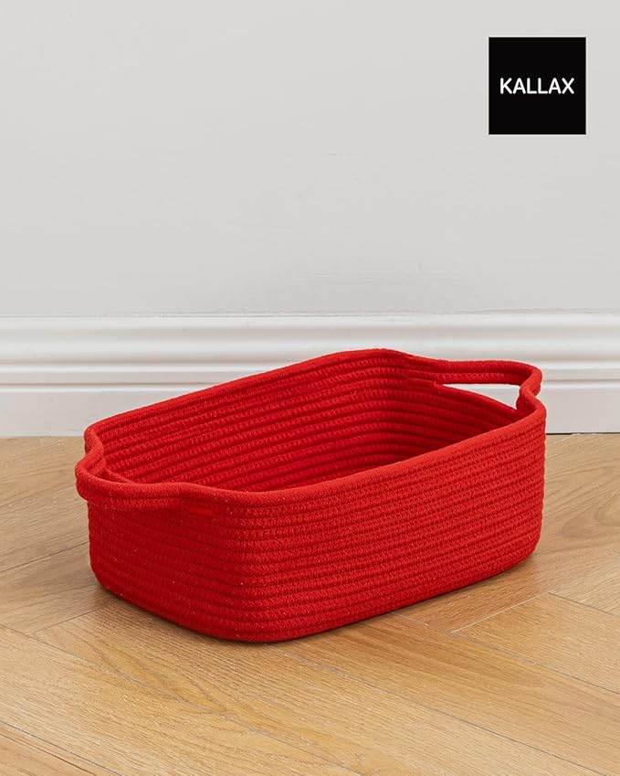 KALLAX Small Woven Basket, 12 x 8 x 4.5 Inches, Small Storage Baskets for Organizing, Gift Baskets Empty, Cute Rope Shelf Closet Storage Bins for Shelves, Dog Toy Basket, Red
