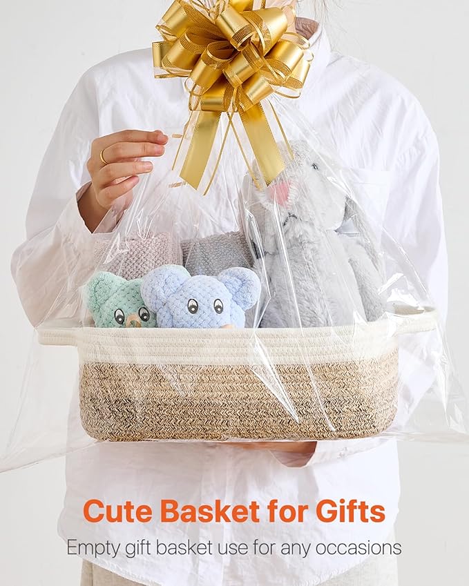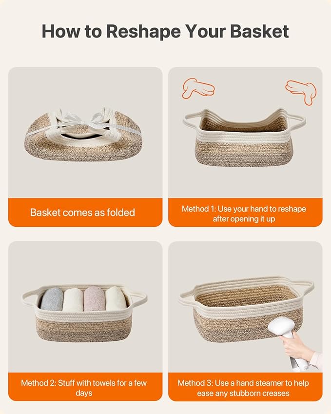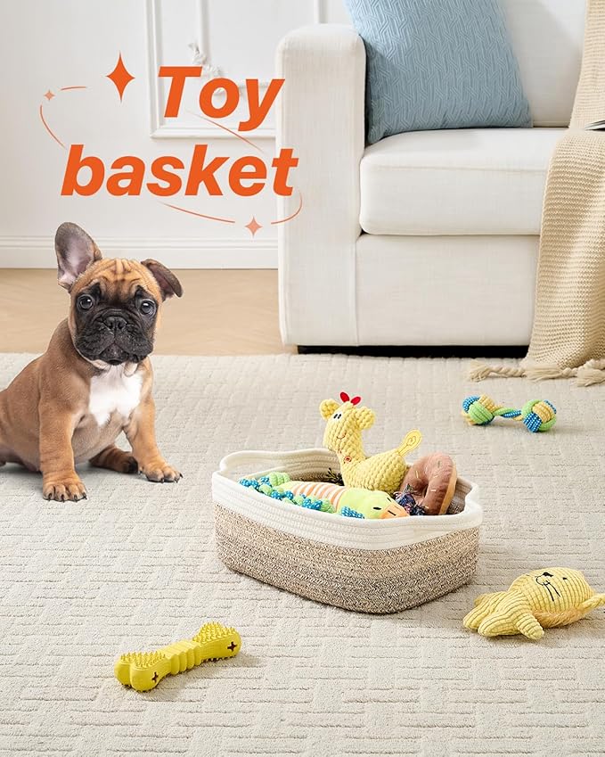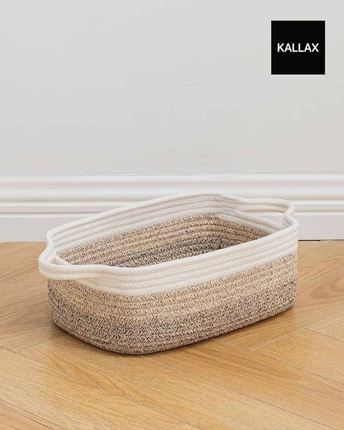 KALLAX Small Woven Basket, 12 x 8 x 4.5 Inches, Small Storage Baskets for Organizing, Gift Baskets Empty, Cute Rope Shelf Closet Storage Bins for Shelves, Dog Toy Basket, Gradient Brown