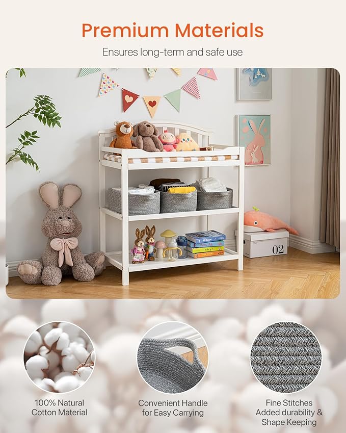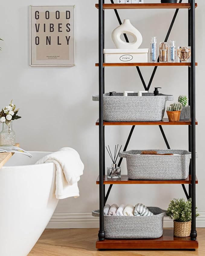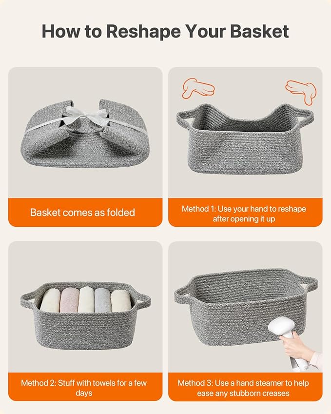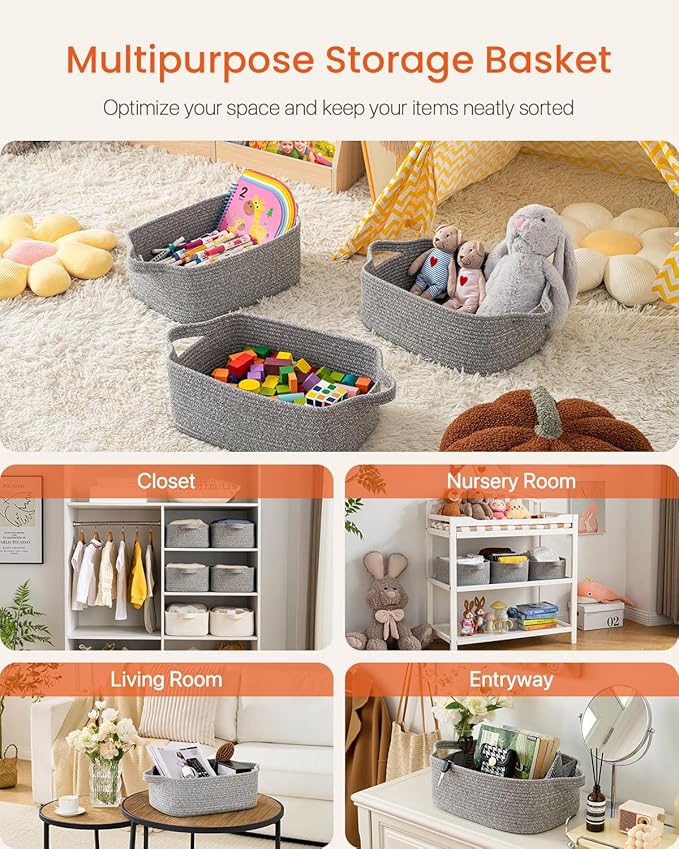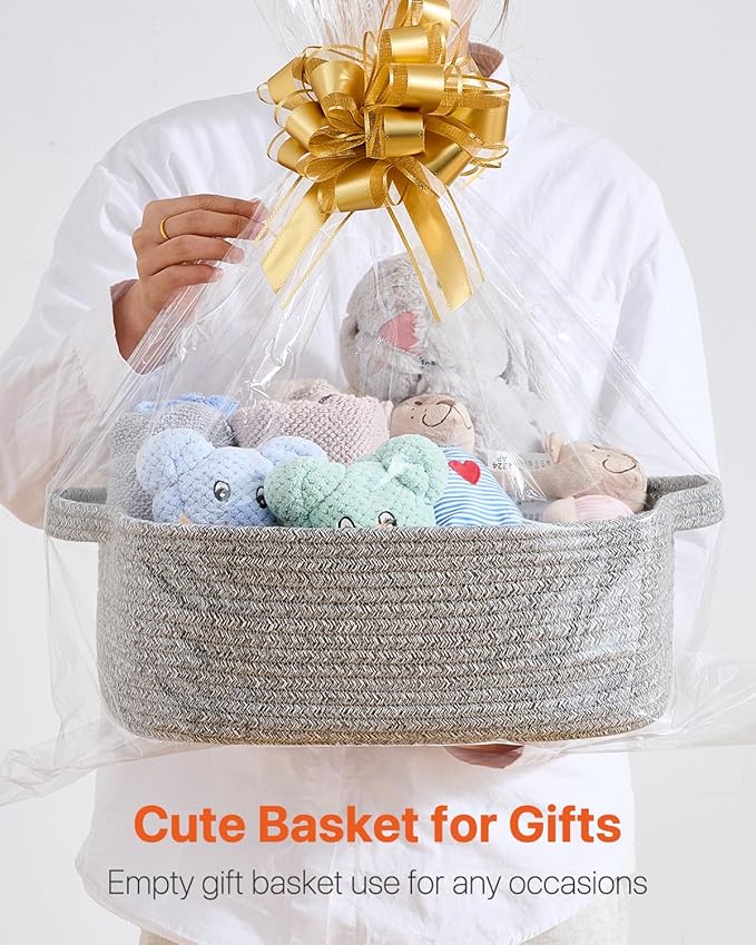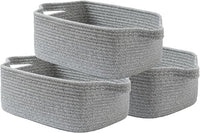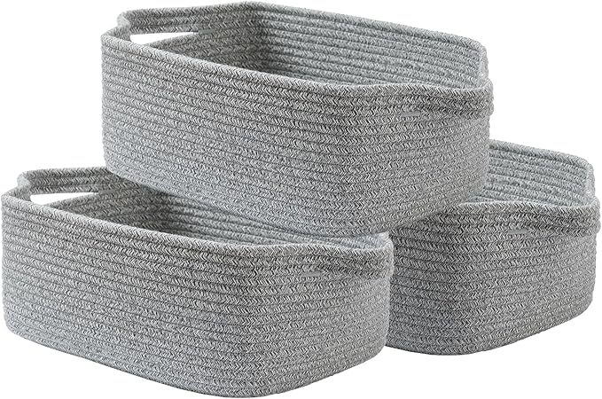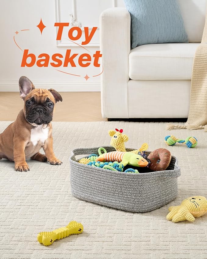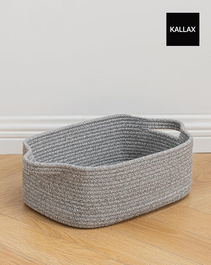 KALLAX Small Woven Basket, 14 x 10 x 5.6 Inches, Small Storage Baskets for Organizing, Gift Baskets Empty, Cute Rope Shelf Closet Storage Bins for Shelves, Dog Toy Basket, Mixed Grey
