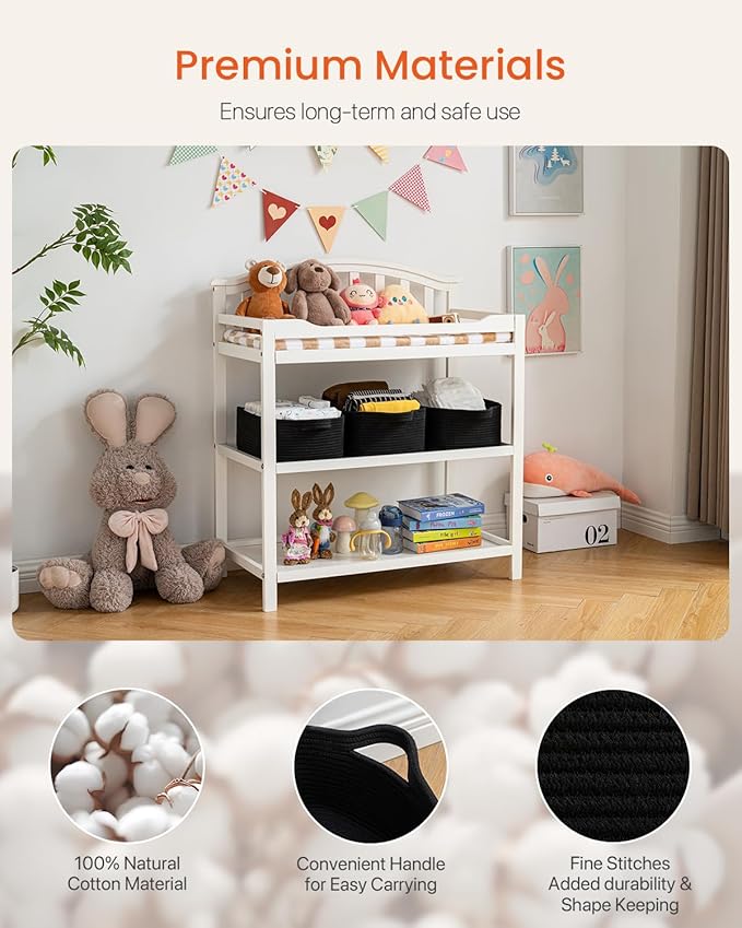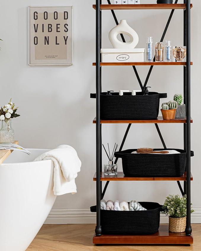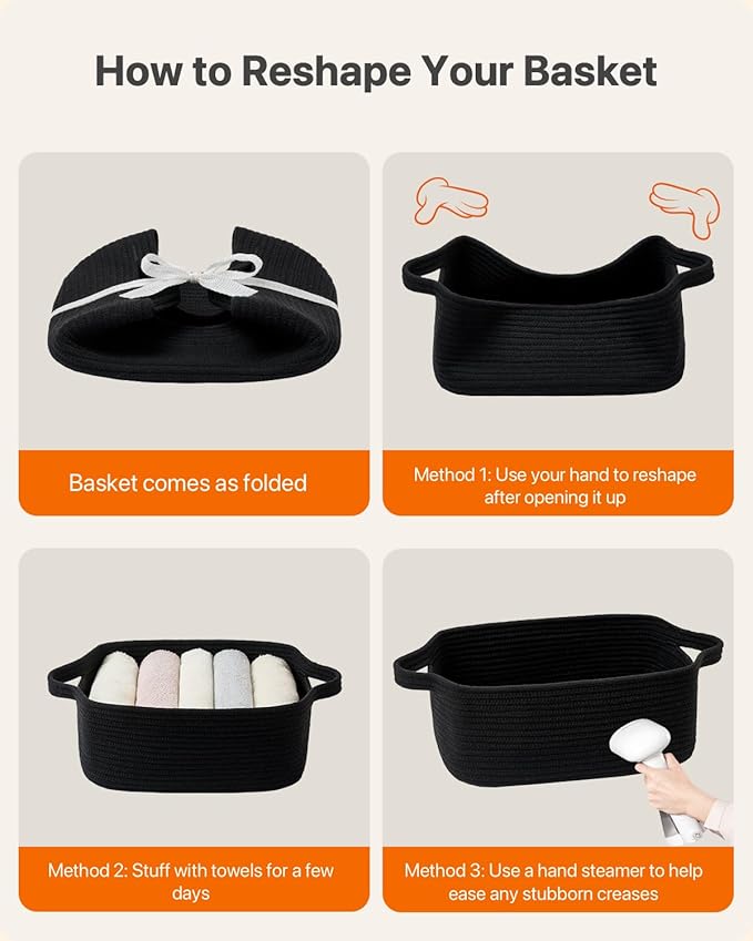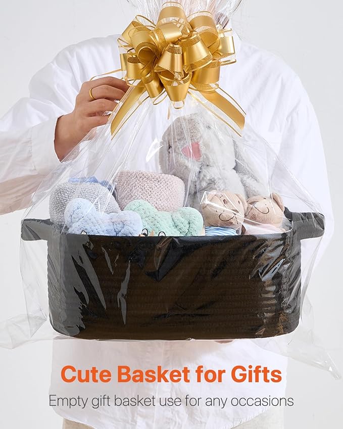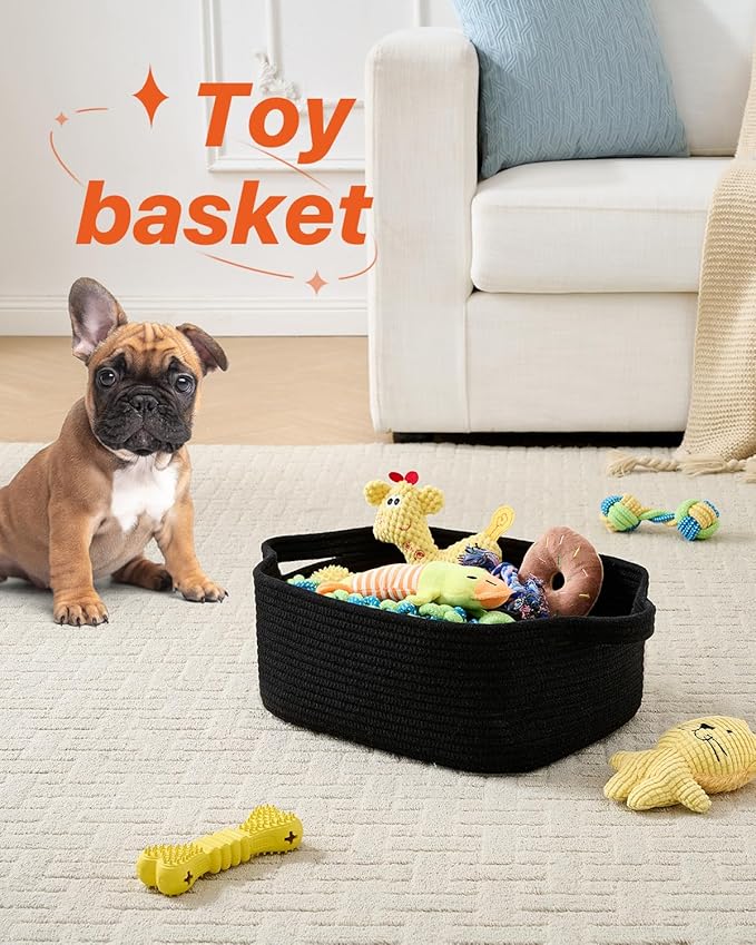 KALLAX Small Woven Basket, 14 x 10 x 5.6 Inches, Small Storage Baskets for Organizing, Gift Baskets Empty, Cute Rope Shelf Closet Storage Bins for Shelves, Dog Toy Basket, Black