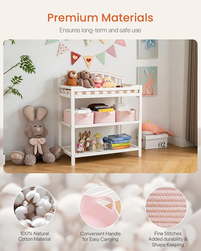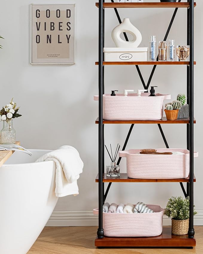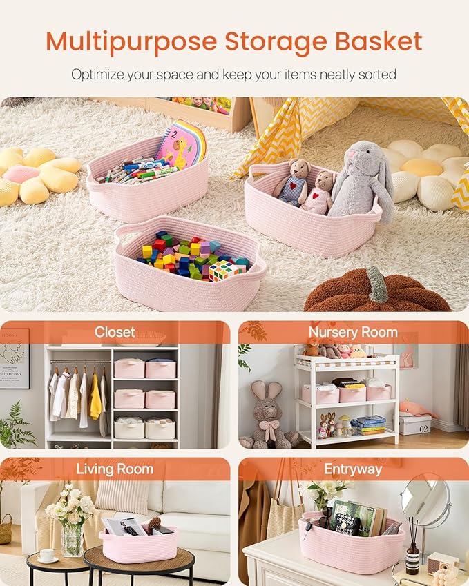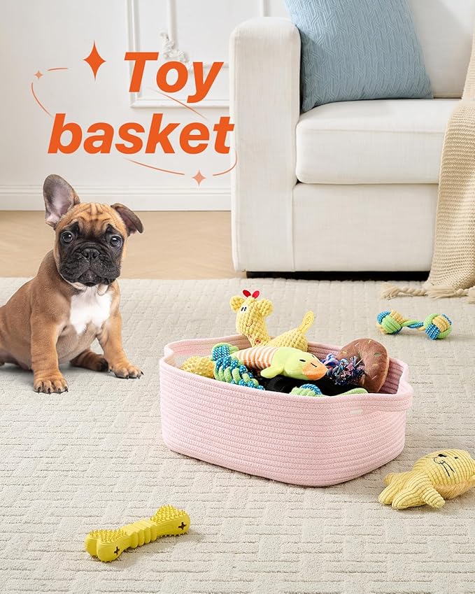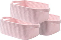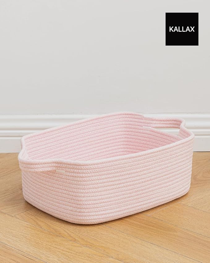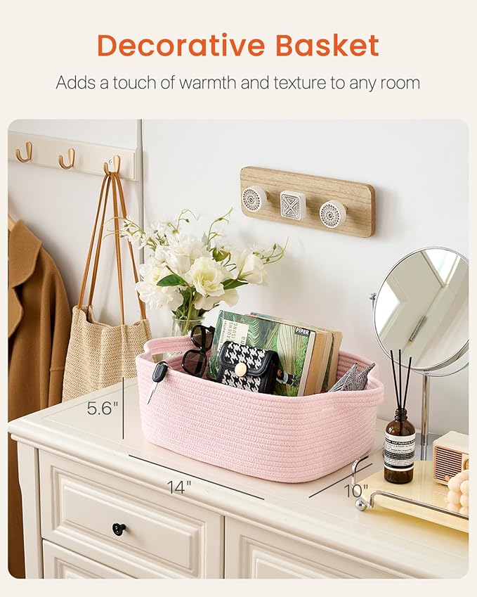 KALLAX Small Woven Basket, 14 x 10 x 5.6 Inches, Small Storage Baskets for Organizing, Gift Baskets Empty, Cute Rope Shelf Closet Storage Bins for Shelves, Dog Toy Basket, Light Pink