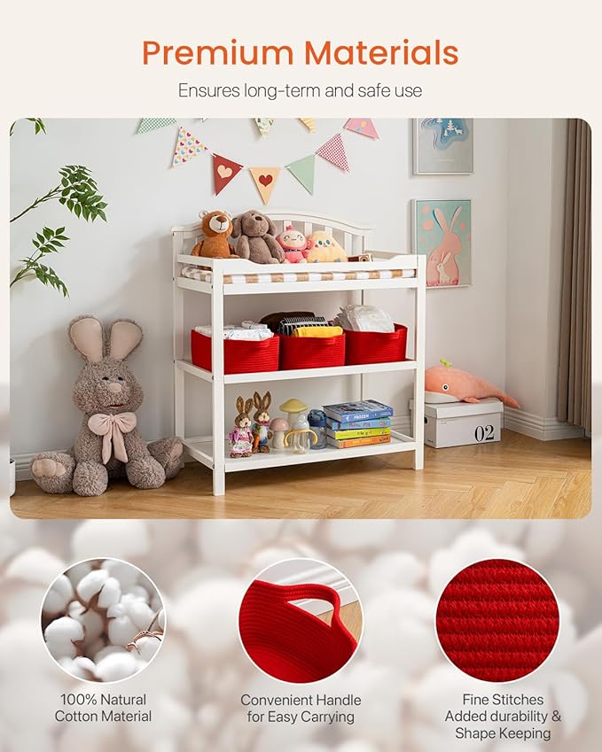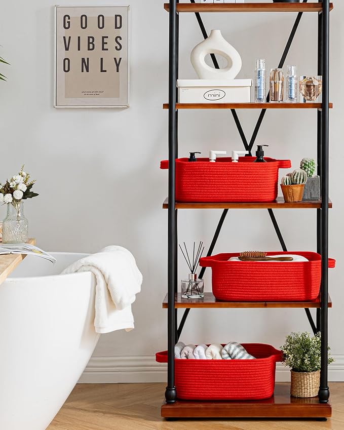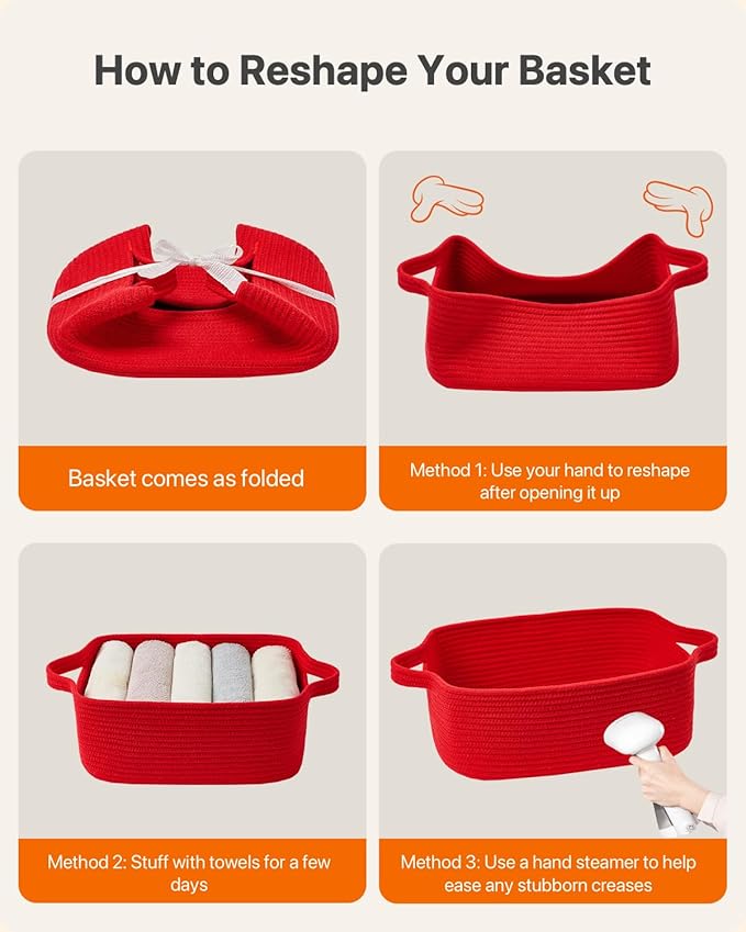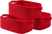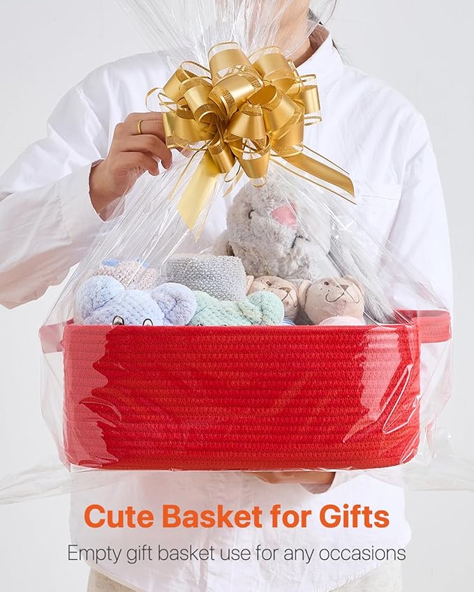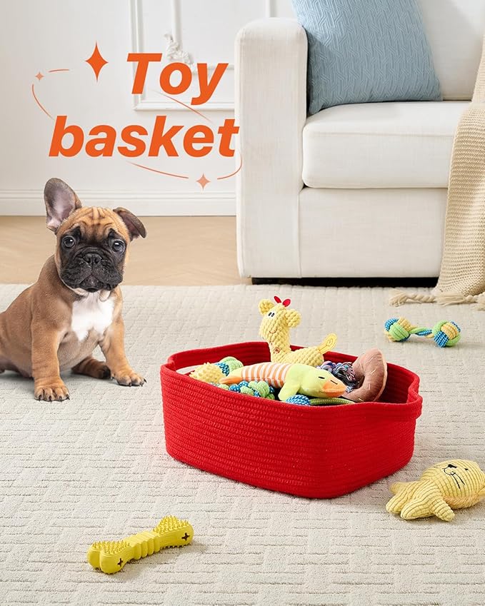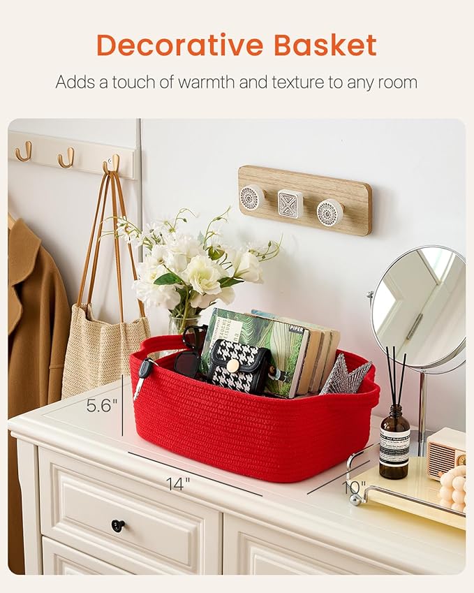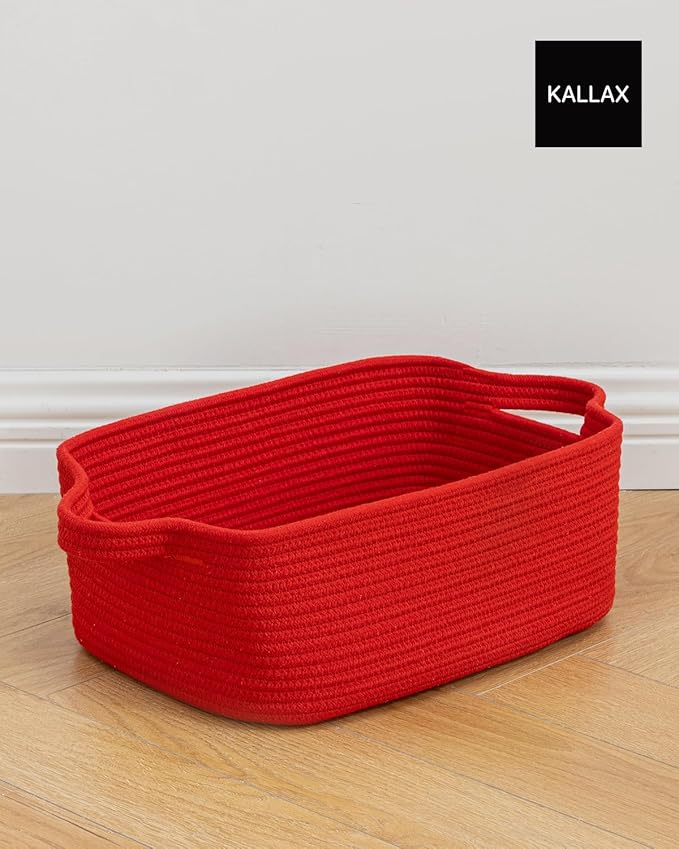 KALLAX Small Woven Basket, 14 x 10 x 5.6 Inches, Small Storage Baskets for Organizing, Gift Baskets Empty, Cute Rope Shelf Closet Storage Bins for Shelves, Dog Toy Basket, Red