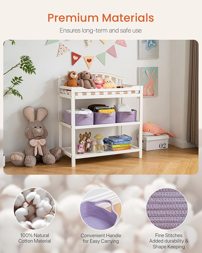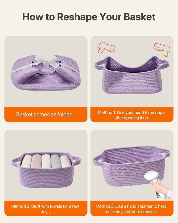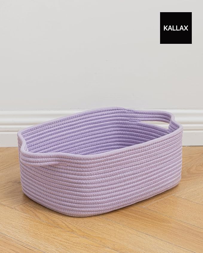 KALLAX Small Woven Basket, 14 x 10 x 5.6 Inches, Small Storage Baskets for Organizing, Gift Baskets Empty, Cute Rope Shelf Closet Storage Bins for Shelves, Dog Toy Basket, Purple