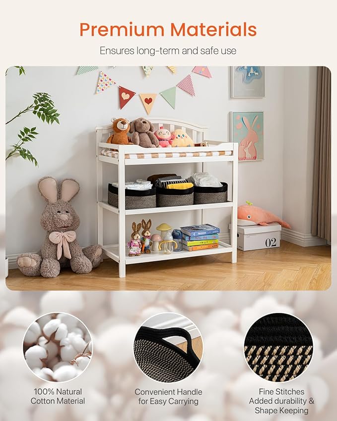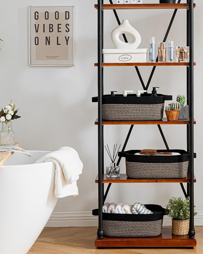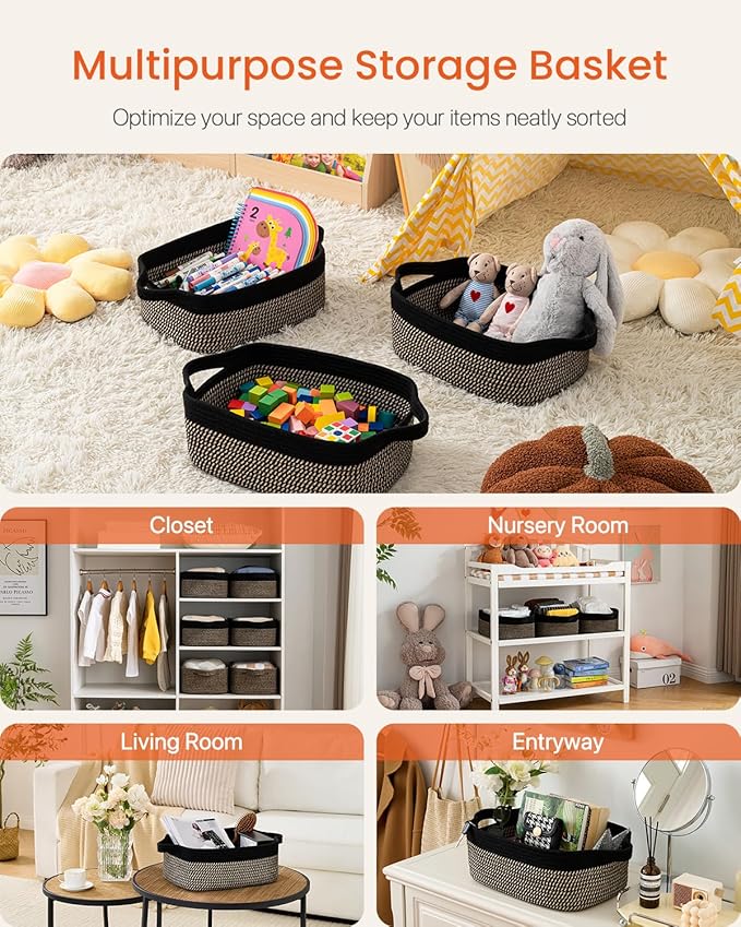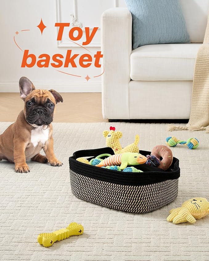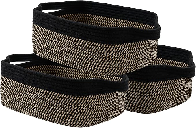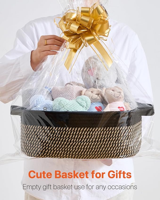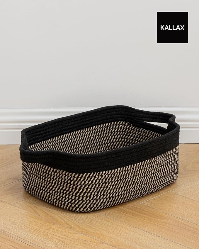 KALLAX Small Woven Basket, 14 x 10 x 5.6 Inches, Small Storage Baskets for Organizing, Gift Baskets Empty, Cute Rope Shelf Closet Storage Bins for Shelves, Dog Toy Basket, Black & Brown