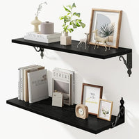 Floating Shelves for Wall, 24"W x 8"D Wall Shelves, 8 Inch Deep Floating Shelf with Bracket, 24 Inch Floating Shelves for Living Room and Bathroom, Display & Storage Shelves, Black, Set of 2
