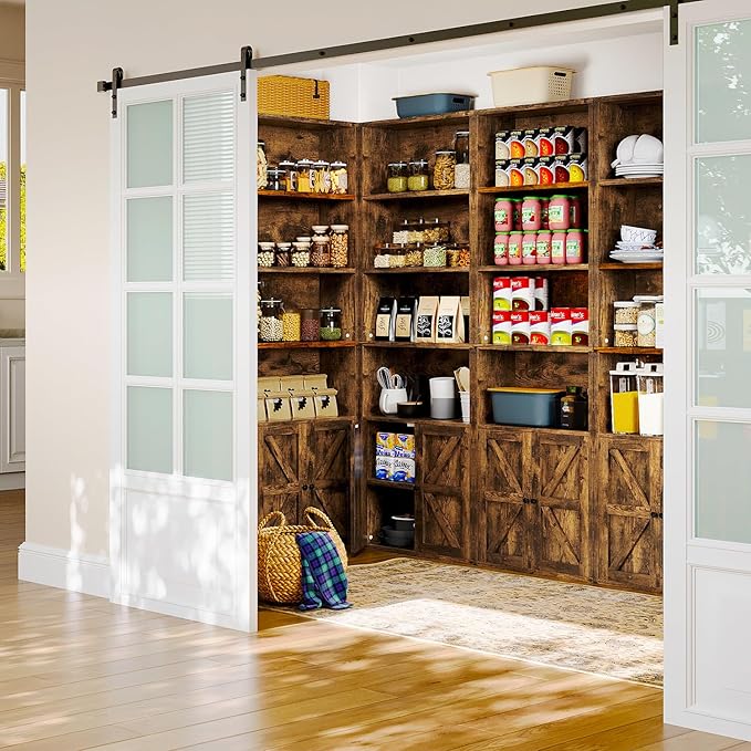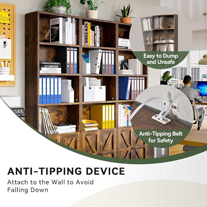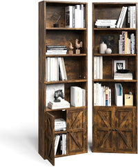 Tall Bookshelf Set of 2, 6 Tier Floor Standing Bookcase with Two Hinged Doors, Storage Organizer Display Shelves, Modern Corner Bookshelf Storage Cabinet for Living Room, Office, Brown Sale