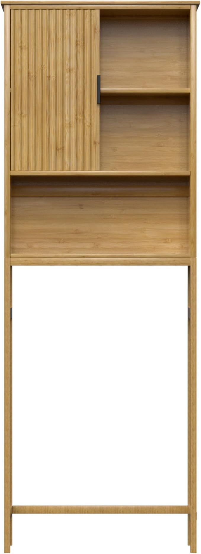 MUPATER 66.9” Bamboo Over The Toilet Storage Cabinet, Bathroom Space Saver, Bathroom Freestanding Over The Toilet with Open Storage, Natural