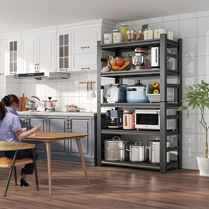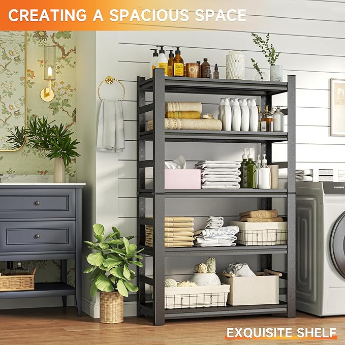 5 Tier Book Shelf, Metal Adjustable Bookcase, Modern Tall Bookshelf for CDs Movies Books, Industrial Book shelves Storage Shelving for Bedroom Home Office Kitchen Living Room, 15.7"D x 31.5"W x 63"H