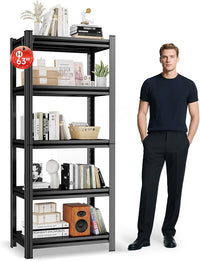 5 Tier Metal Bookshelf Heavy Duty Shelving Unit Steel Utility Racks, Black Bookshelf Industrial Corner Storage Shelf for Office,Kitchen,Bedroom and Living Room, Adjustable Shelves for Garage