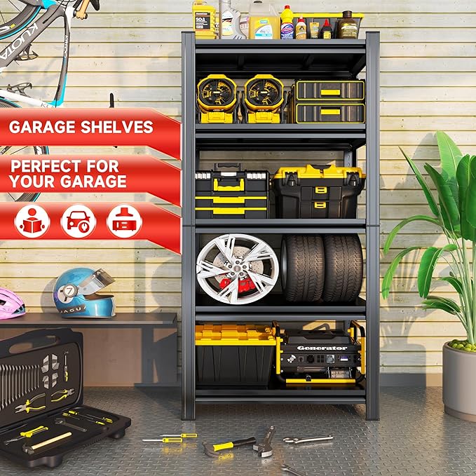 5 Tier Metal Bookshelf Heavy Duty Shelving Unit Steel Utility Racks, Black Bookshelf Industrial Corner Storage Shelf for Office,Kitchen,Bedroom and Living Room, Adjustable Shelves for Garage Sale