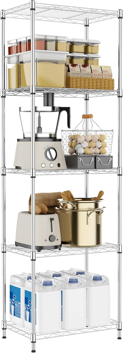 5 Tiers Shelf Metal Storage Shelves Wire Rack Closet Organizers with Wheel for Garage Kitchen Bathroom Laundry Chrome 11.8" D x 17.7" W x 55" H
