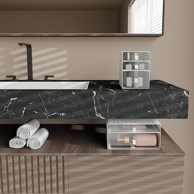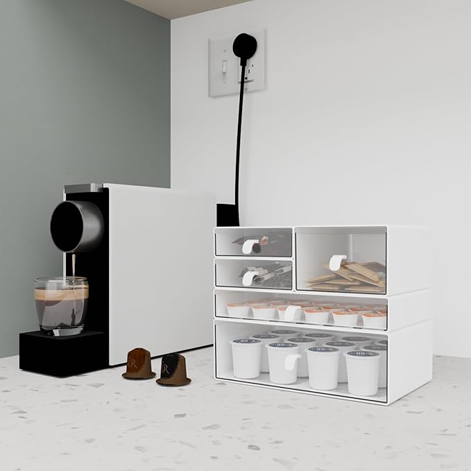 Desk Organizer Set, White & Clear Stackable Dustproof Storage Boxes for Desktop, Office, Bathroom, DIY Craft & Vertical Space Saving, Perfect for Makeup, Stationery Organization (5 Drawer)