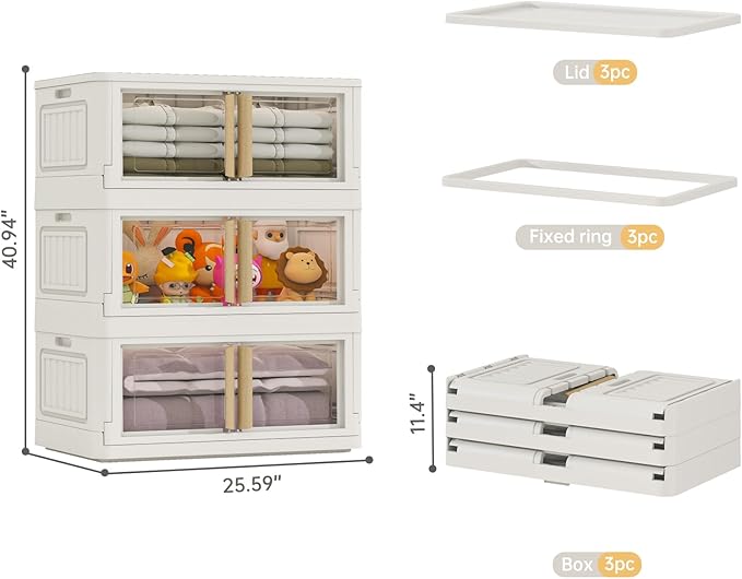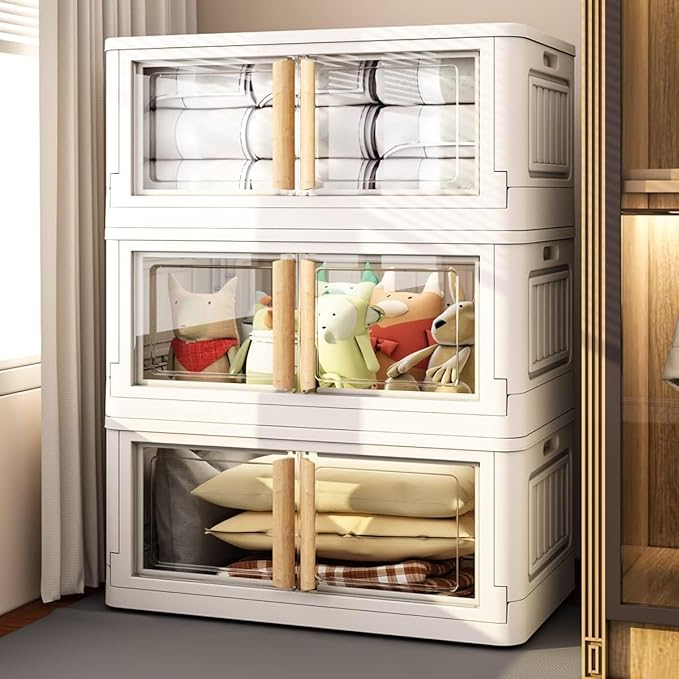 KHNR Storage Bins with Lids,78 Quart Plastic Bins with Lids,Large Closet Organizers,Collapsible Storage Bins with Wheels,Double Door Stackable Bins for Clothes,Home