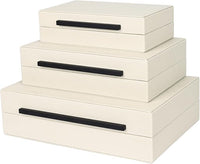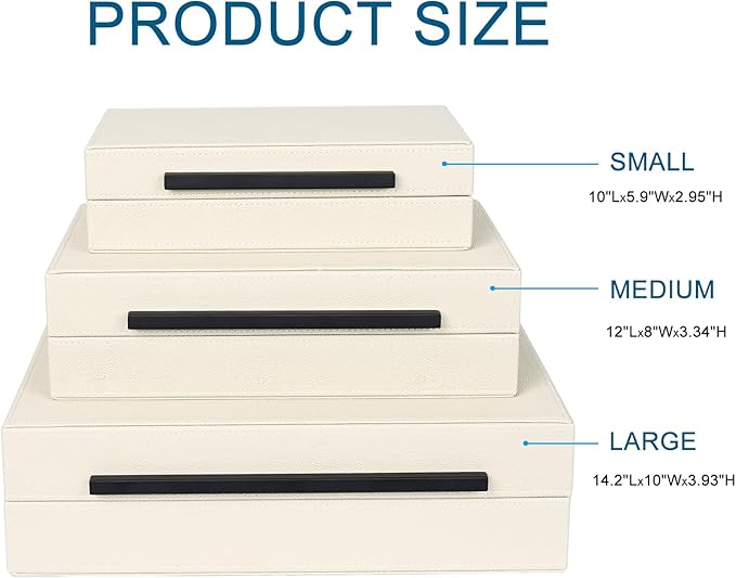 Beige Shagreen Decorative Box Set of 3 - Faux Leather Nesting Storage Boxes with Lids, Large Modern Jewelry Organizer, Stackable Home Decor Box for Bedroom, Bathroom & Office