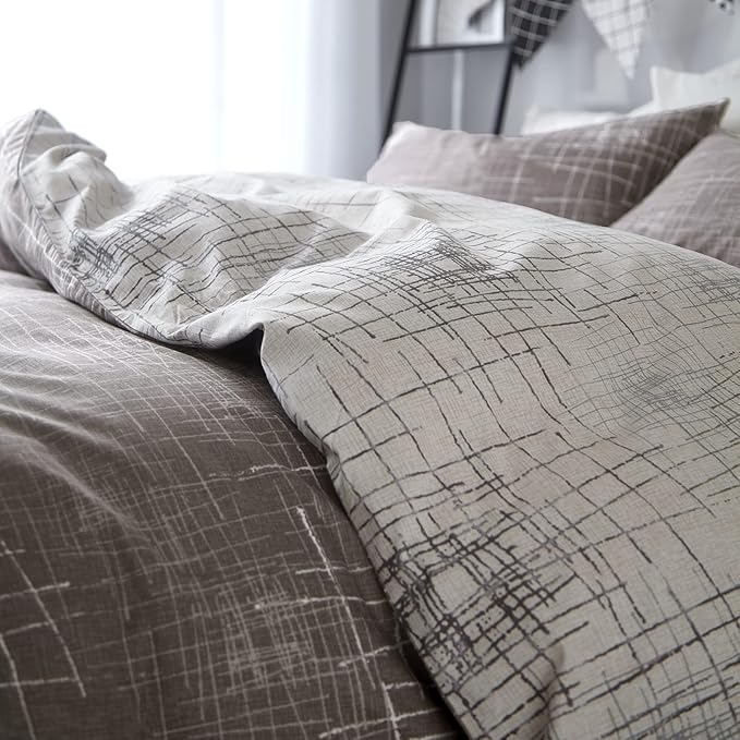 VM VOUGEMARKET Abstract Duvet Cover Queen,100% Cotton Brown Gray Reversible Duvet Cover Set for Men,Teens,Minimalism Modern Bedding Set-Queen,Artwork
