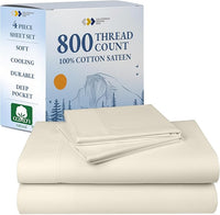 California Design Den Luxury Queen Sheets Set - Buttery Soft 800 Thread Count Sateen, 100% Cotton Bed Sheets Set with Deep Pockets, Beats Fake Egyptian Claims, Durable Bedding (Creamy Ivory)