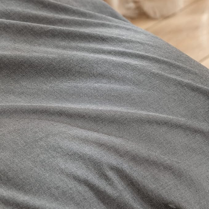 BESTOUCH Duvet Cover Set 100% Washed Cotton Linen Feel Super Soft Comfortable Chic Lightweight 3 PCs Home Bedding Set Solid Dark Grey Queen