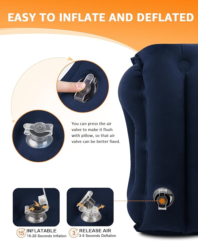 Sunany Travel Pillow, Inflatable Neck Pillow Used for Airplanes/Cars/Buses/Trains/Office Napping with Eye Mask/Earplugs (Blue)