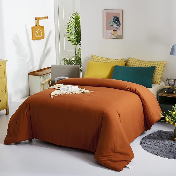 Luxlovery Burnt Orange Comforter Set Queen Rust Bedding Comforter Set Full Caramel Cozy Blanket Quilts Solid Color Reddish Brown 3 Piece Comforter Set for Women Men