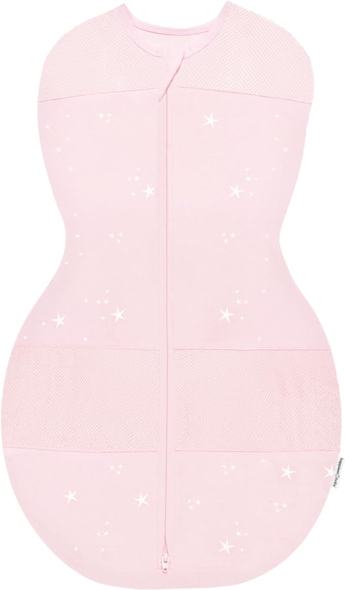Happiest Baby Sleepea 5-Second Swaddle - 100% Organic Cotton Baby Swaddle Blanket - Doctor Designed Promotes Healthy Hip Development (Rose Stars, Medium)