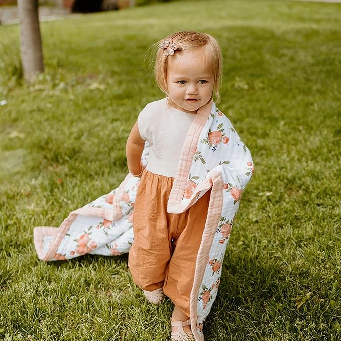 Little Unicorn Newborn Receiving Quilt | Ultra- Soft, Multi-Layered Muslin Fabric | Gift for Newborns & on-The-go (Watercolor Roses)