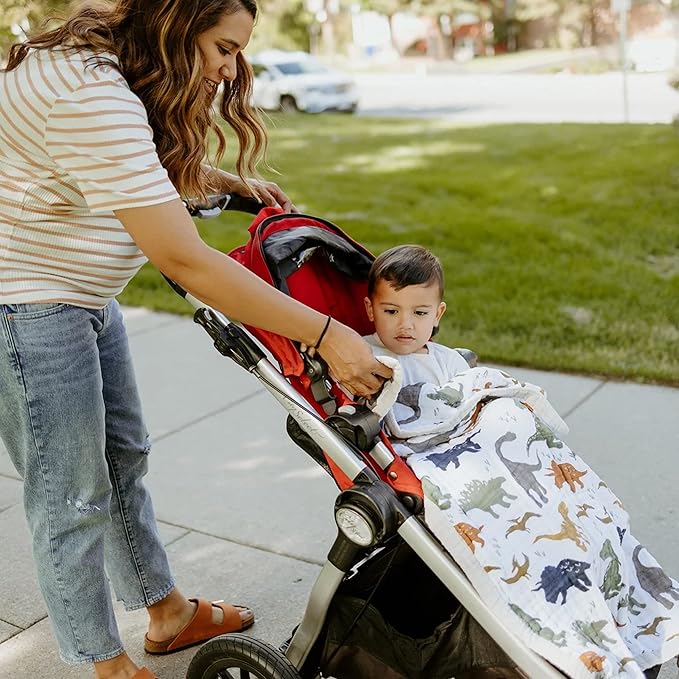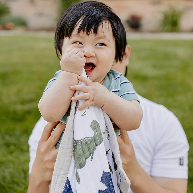Little Unicorn Newborn Receiving Quilt | Ultra- Soft, Multi-Layered Muslin Fabric | Gift for Newborns & on-The-go (Dino Friends)