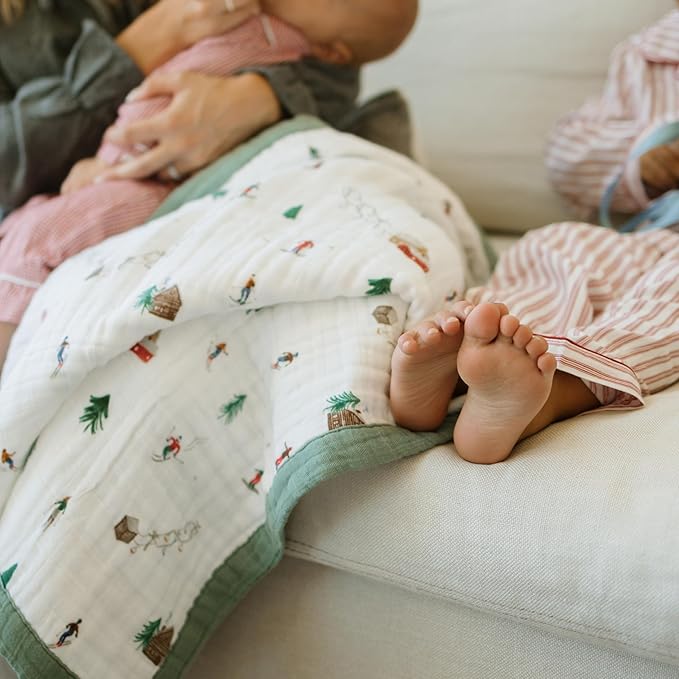 Little Unicorn Newborn Receiving Quilt | Ultra- Soft, Multi-Layered Muslin Fabric | Gift for Newborns & on-The-go (Powder Party)