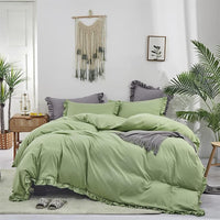 CLOTHKNOW Green Ruffles Full Size Comforter Sets Farmhouse Bedding Comforter Sets Soft Shabby Chic Comforter with 2 x Pillow Cases