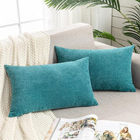 GAWAMAY Decorative Rectangle Throw Pillow Covers 12"x20" Inch Set of 2, Soft Chenille Lumbar Support Pillow Fall Pillowcase for Living Room Bedroom Sofa Couch Cushion Cover Teal 30x50cm (NO Inserts)