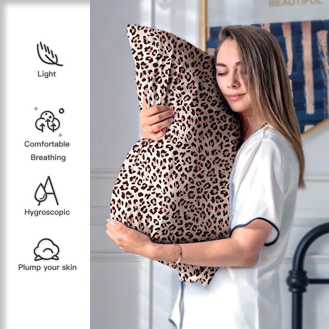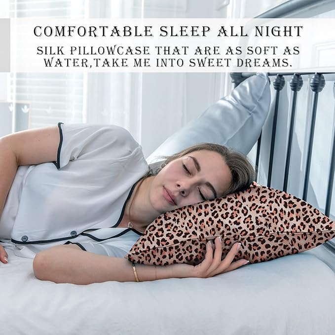 Mulberry Silk Pillowcase for Hair and Skin Standard Size Leopard Print Silk Pillow Cases with Zipper Soft Breathable Smooth Cooling Silk Pillow Covers for Sleeping (Taupe Leopard,20"X 26",1Pcs)