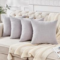 GAWAMAY Decorative Square Throw Pillow Covers 18"x18" Inch Set of 4, Super Soft Chenille Pillows Farmhouse Fall Pillowcase for Living Room Bedroom Sofa Couch Cushion Cover Light Grey 45x45cm
