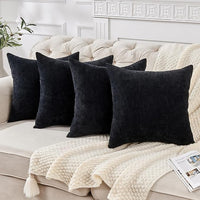 GAWAMAY Decorative Square Throw Pillow Covers 18"x18" Inch Set of 4, Super Soft Chenille Pillows Farmhouse Fall Pillowcase for Living Room Bedroom Sofa Couch Cushion Cover Black 45x45cm (No Insert)