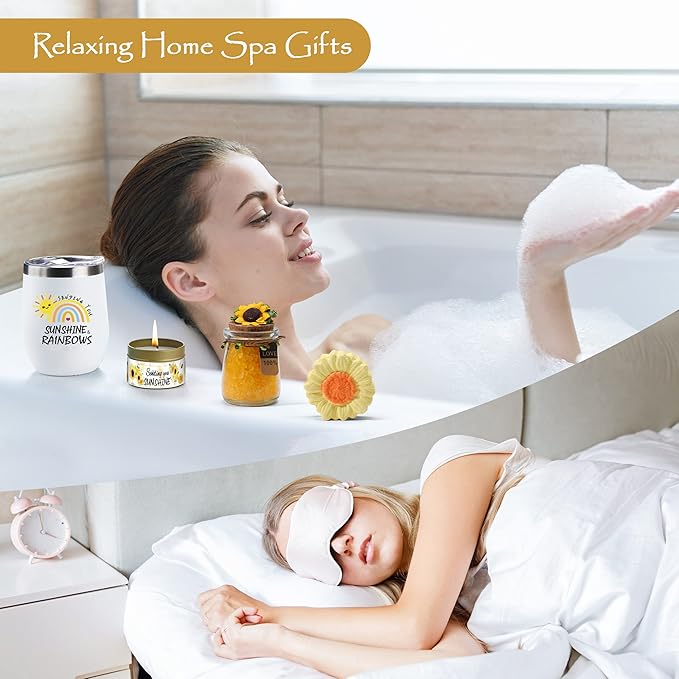Sunflower Gifts for Women Sending Sunshine Gift-Birthday Gifts for Women Unique-Thank You-Self Care Package-Get Well Gift-Inspirational Retirement Spa Gift Basket for Mom Grandma Wife Friends Sister