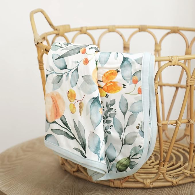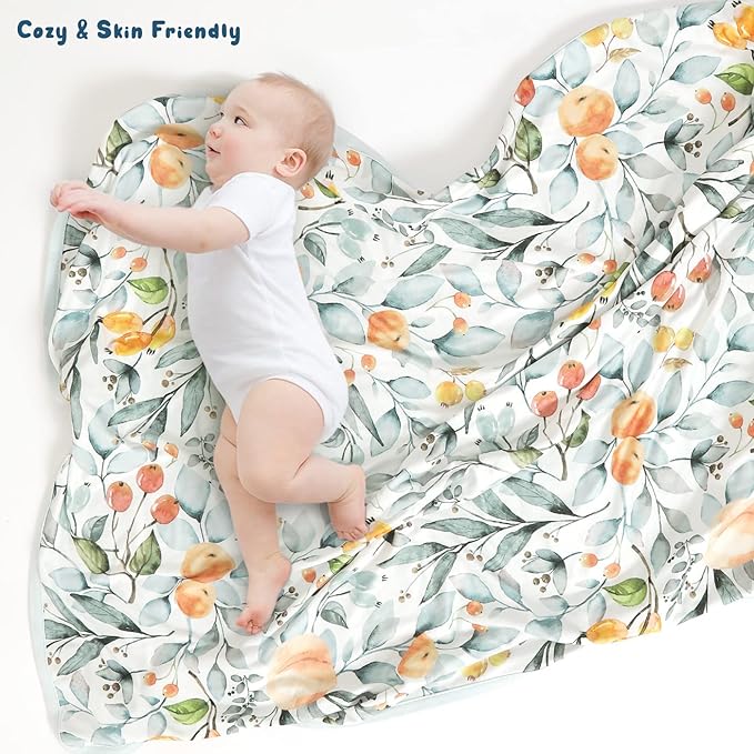 GRSSDER Baby Blankets Super Soft Stretchy Jersey Swaddle Blanket 2 Pack for Baby Girls, Double Layer Reversible Receiving Blankets 34 x 44, Extra Large for Swaddling, Pink Rose & Fruit