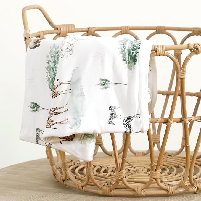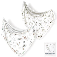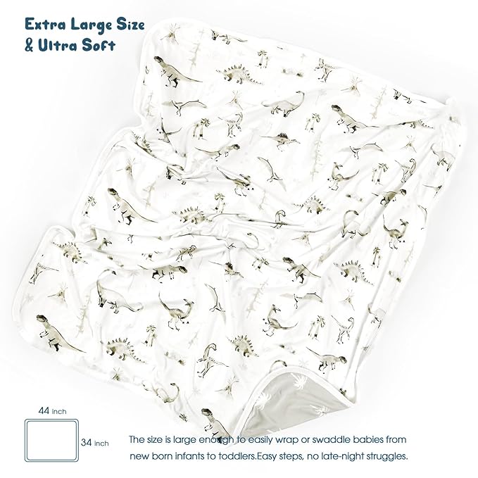 GRSSDER Baby Blankets Super Soft Stretchy Jersey Swaddle Blanket 2 Pack for Girls and Boys, Double Layer Reversible Receiving Blankets 34 x 44, Extra Large for Swaddling, Dinosaurs