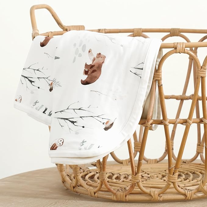 GRSSDER Baby Blankets Super Soft Stretchy Jersey Swaddle Blanket 2 Pack for Girls and Boys, Double Layer Reversible Receiving Blankets 34 x 44, Extra Large for Swaddling, Squirrel & Jungle