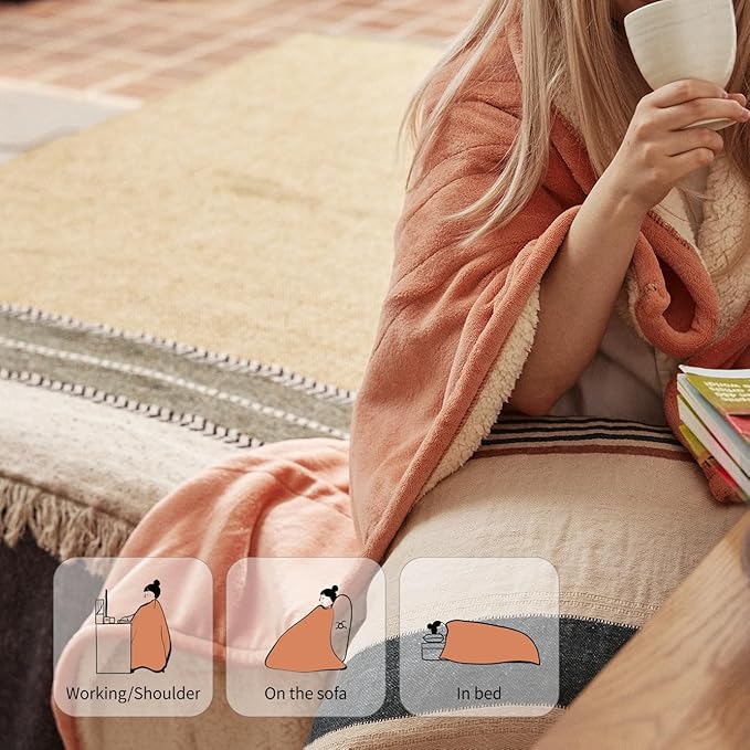 Heated Blanket 50''x60''-Soft and Comfortable Electric Throw,5 Heat Settings and 3H Auto Shut-Off Heating Blanket ETL&FCC Certification Machine Washable (Orange)
