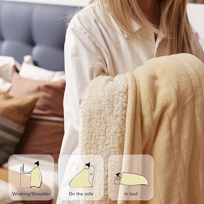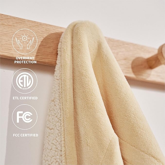 Heated Blanket 50''x60''-Soft and Comfortable Electric Throw,5 Heat Settings and 3H Auto Shut-Off Heating Blanket ETL&FCC Certification Machine Washable (Yellow)