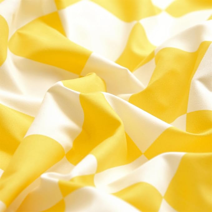 CLOTHKNOW Yellow Plaid Twin/Twin XL Comforter Set 3Pcs Checkerboard Grid Bedding Comforter Sets Yellow Grid Bed Comforter Sets