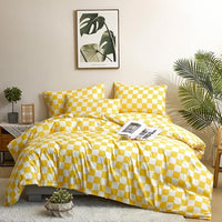 CLOTHKNOW Plaid Queen Comforter Set Yellow White Grid Bedding Comforter Sets Checker Queen Comforter Light Yellow Queen Size Comforter Sets