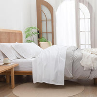 BESTOUCH Sheet Set 100% Washed Cotton Linen Feel Super Soft Comfortable Chic Lightweight 4 Pcs Home Bedding Set Solid Bright White Cal King