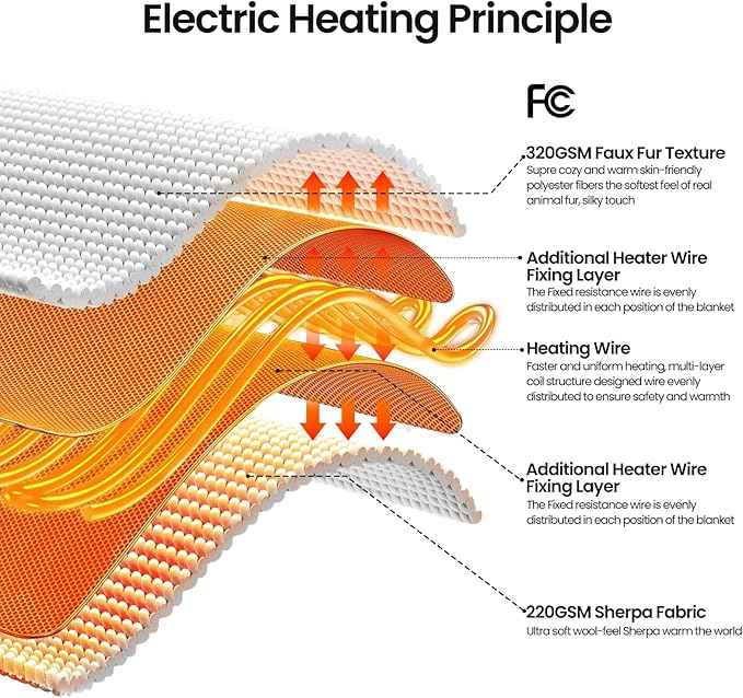 MAXEVE Electric Heated Throw Faux Rabbit Fur Blanket with 8 Heating Levels & 8H Auto Off, Fast Heating Warm Cozy Sherpa Washable Blanket with Over-Heat Protection, ETL Certification, Grey