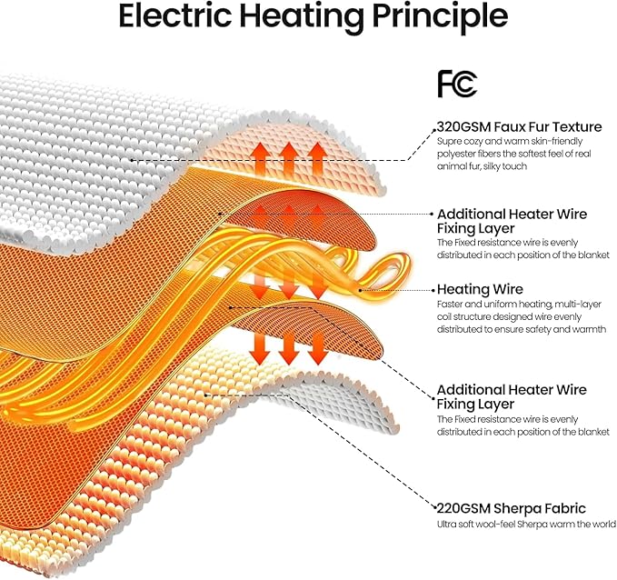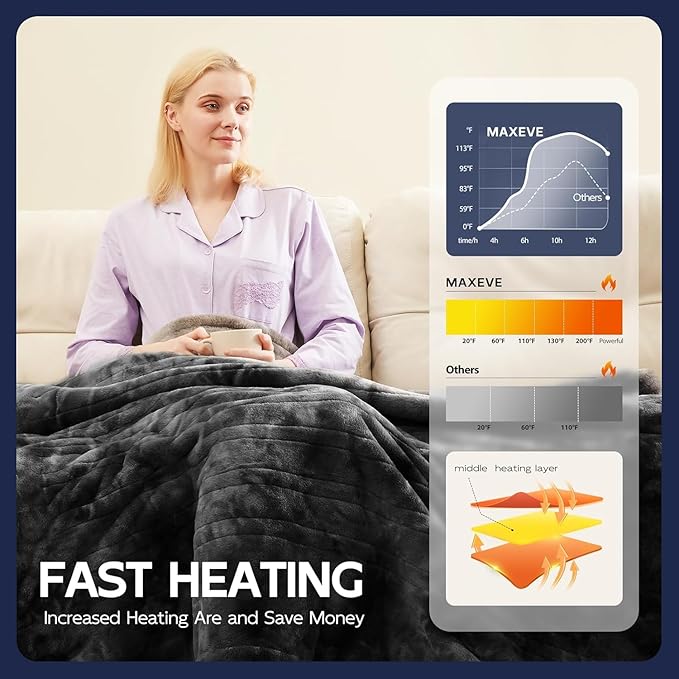 MAXEVE Electric Heated Blanket 84"x 90" Rabbit Faux Fur Queen Blankets with Dual Controllers 8 Heating Levels & 8H Auto Off, Fast Heating Warm Sherpa Washable Throw with ETL Certification, Grey