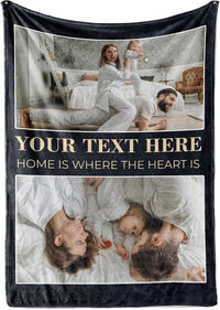 Ships Next Day, Custom Blanket with Picture and Text - Printed in USA, Personalized Photo Blanket with Text (Fleece 60x80)