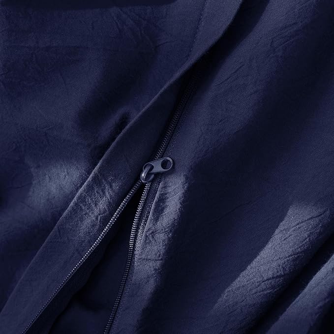 JIYUAN 100% Washed Cotton Duvet Cover Set 3 Pieces King, 1 Duvet Cover 104x90 Inches(Comforter Not Included) and 2 Pillowcases,Linen Feel Bedding Set Comfy and Breathable,Navy Blue