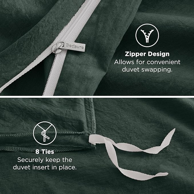 Bedsure 100% Washed Cotton Duvet Cover King Size - Forest Green Minimalist Cotton Duvet Cover Linen Like for All Seasons - GentleSoft™ Plain Simple Bedding, 3 Pieces (Forest Green, King, 104"x90")