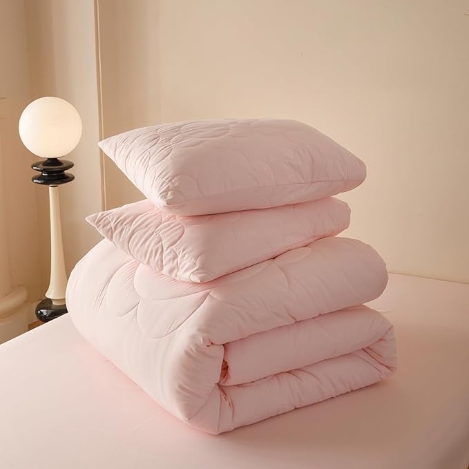 Luxlovery Pink Floral Comforter Set King Boho Light Pink Sunflower Quilts Blush Pink Bedding Comforter Set Rustic Plain Color Soft Breathable Cozy Comforter Women Girls