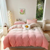 CLOTHKNOW Pink White Fluffy Queen Comforter Set Velvet Bedding Comforter Sets Soft Pink White Comforter with 2 x Pillow Cases