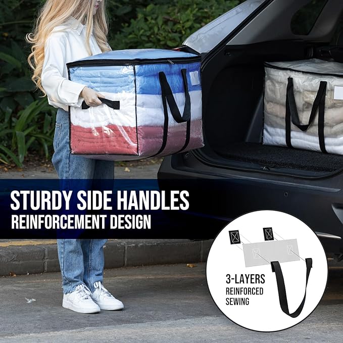 TAILI Extra Large Moving Bags, 4 Pack Clear Heavy Duty Totes For Storage with Visible Window, Wrap Around Handles, Storage Bags for Space Saving, Alternative to Moving Boxes